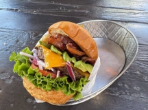 Impossible patty, avocado, tomato, cucumber, onion, organic mixed lettuce, & vegan mayo