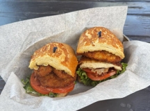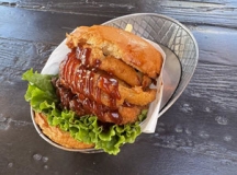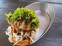 Crispy eggplant, tomato, lettuce, cabbage, onions, honey bourbon, & tonkatsu sauce w/ vegan mayo