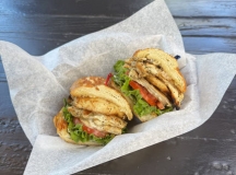 Dutch crunch bread, grilled chicken, lettuce, tomato, provolone cheese, & mayo