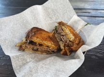 Ryr bread, Angus beef patty, grilled onion, grilled mushroom, cheddar, & Swiss cheese w/ Thousand island